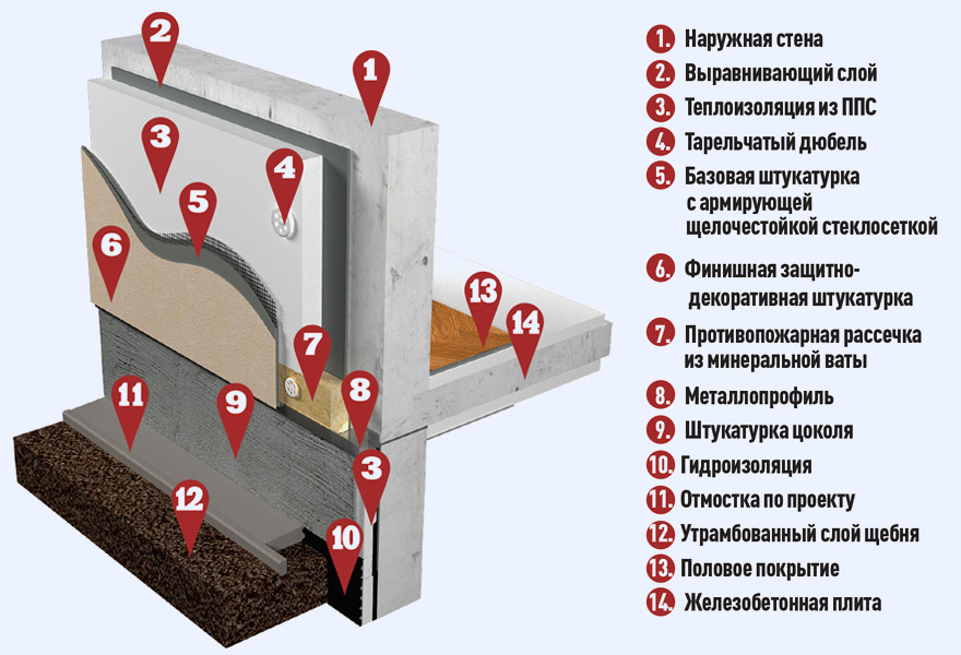 Разработан шаблон спецификации в соответствии с ГОСТ Р 21.1101-2013. Стена подвала с теплоизоляцией из пенополистирольных плит ППС20-Т с несущей конструкцией из кирпича. Плиты теплоизоляции точечно приклеивают к наружной поверхности стены подвала после выполнения по ней гидроизоляции и дополнительно крепят анкерами с тарельчатыми дюбелями. Применяется в многоэтажном строительстве.