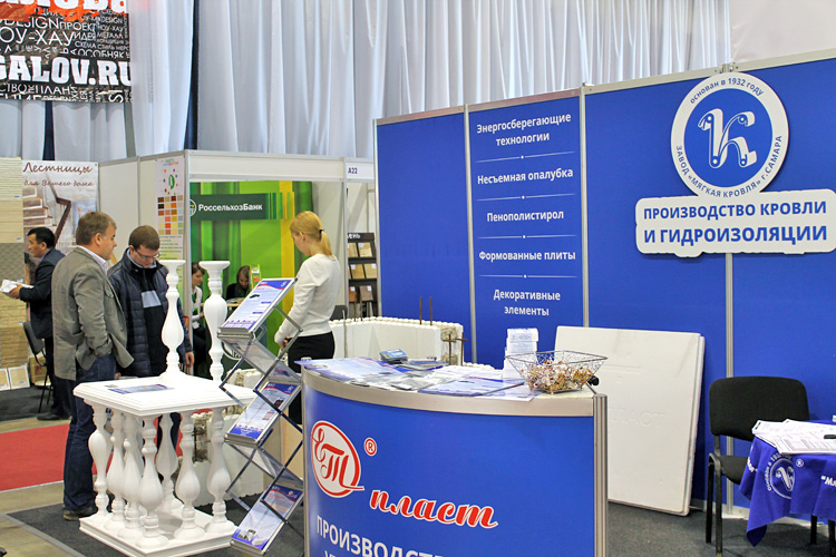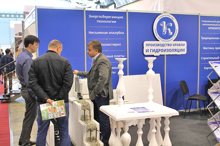 Завод «Мягкая кровля» встречал на своем стенде посетителей образцами не только гидроизоляционных и кровельных материалов, но и энергосберегающей технологией строительства домов.